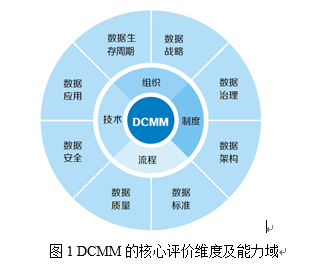 DCMM数据管理能力成熟度评估模型定义了数据战略、数据治理、数据架构、数据应用、数据安全、数据质量、数据标准和数据生存周期八个核心能力域及28个能力项,并以组织、制度、流程和技术作为八个核心域评价维度。